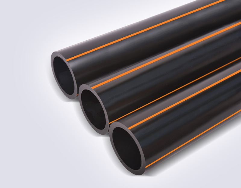 "森普"牌燃氣用埋地聚乙烯管材采用優質的PE80或PE100原料制造,達到或超過GB15558.1《燃氣用埋地聚乙烯(PE)管道系統第1部分:管材》標準要求,具有優良的物理力學性能。管材為黑色,縱向帶黃色色條4根。